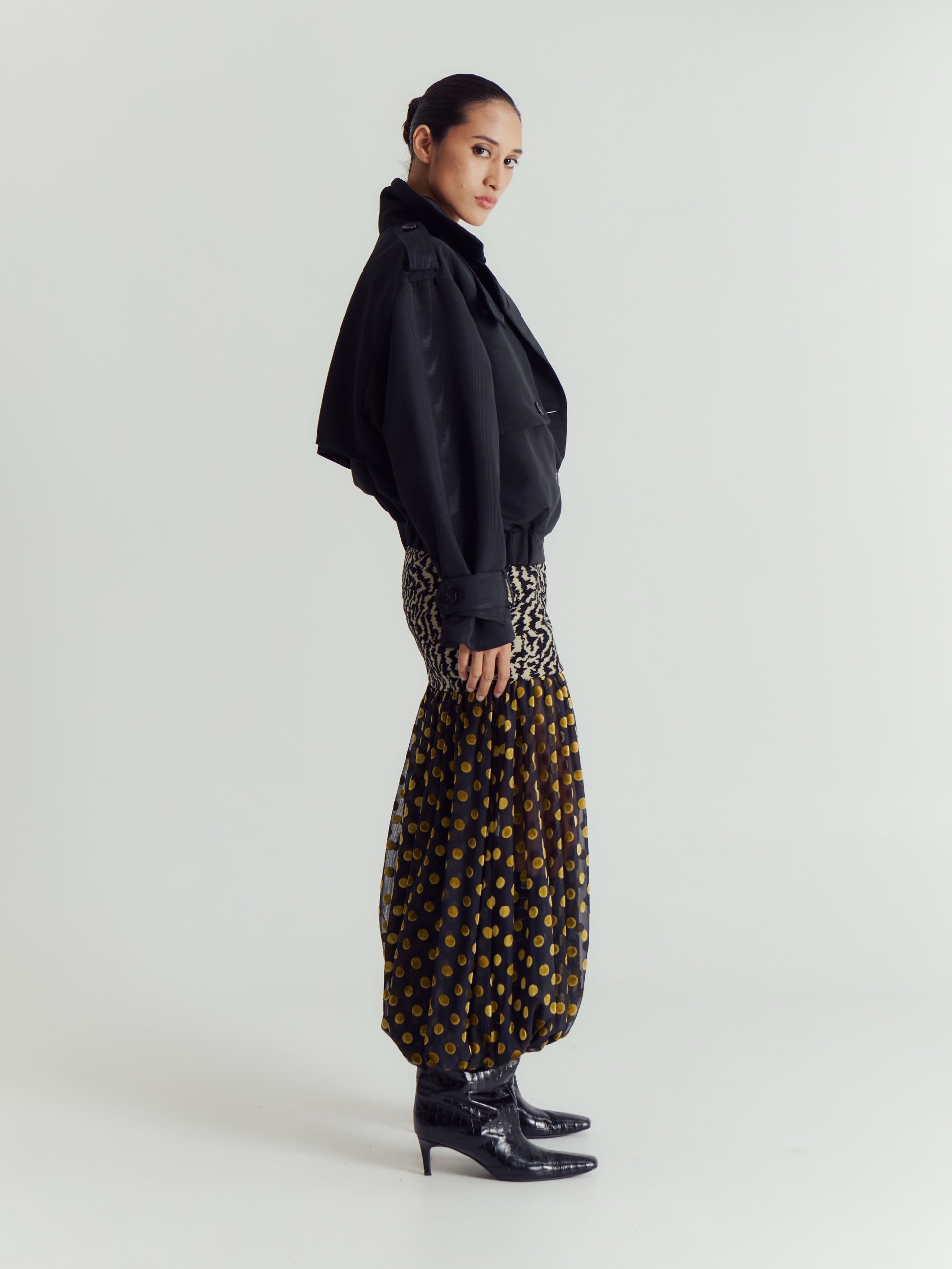 chiffon/devoré bottom to be removed. Wear it as a mini skirt or as the full layered look.