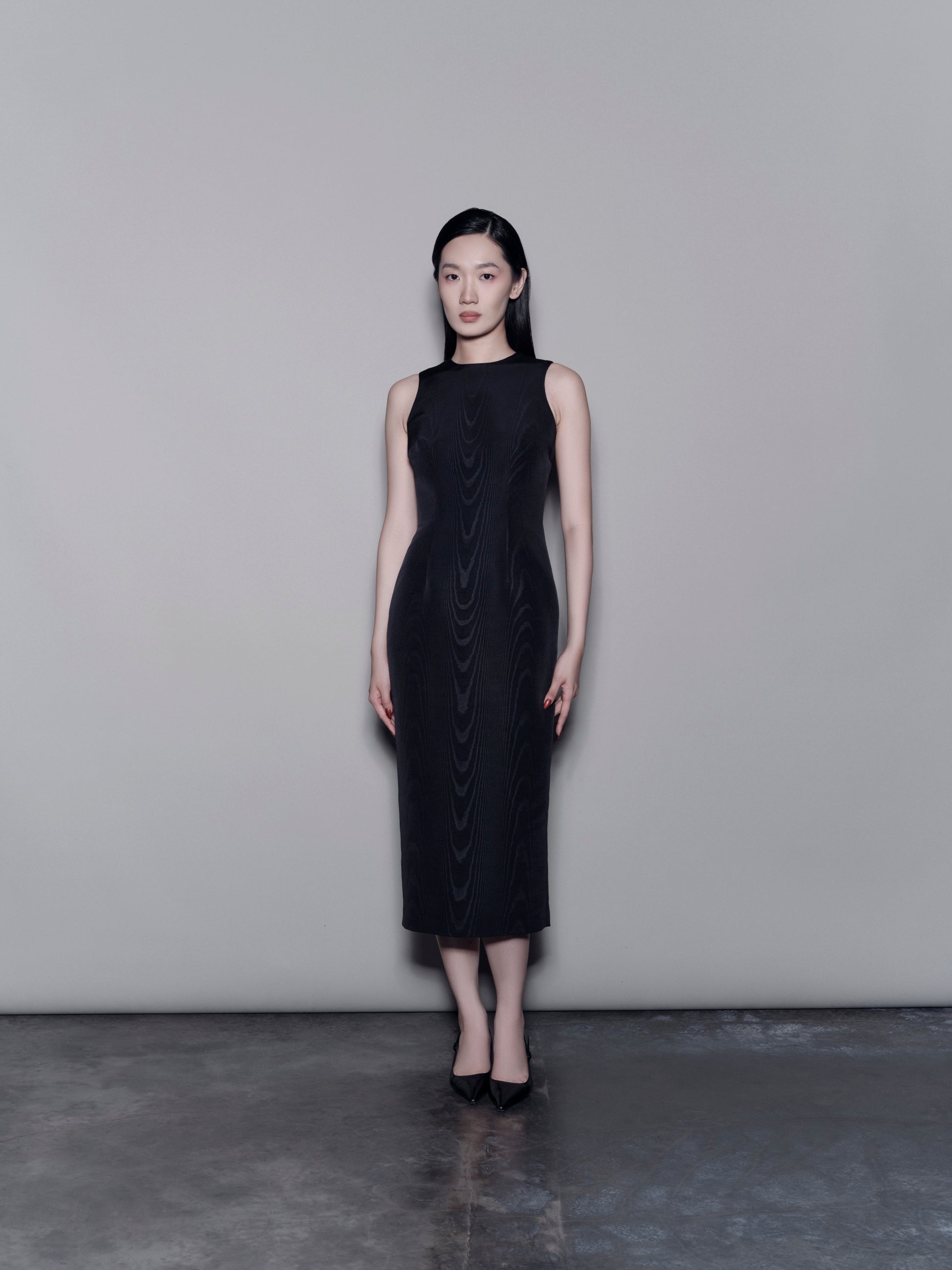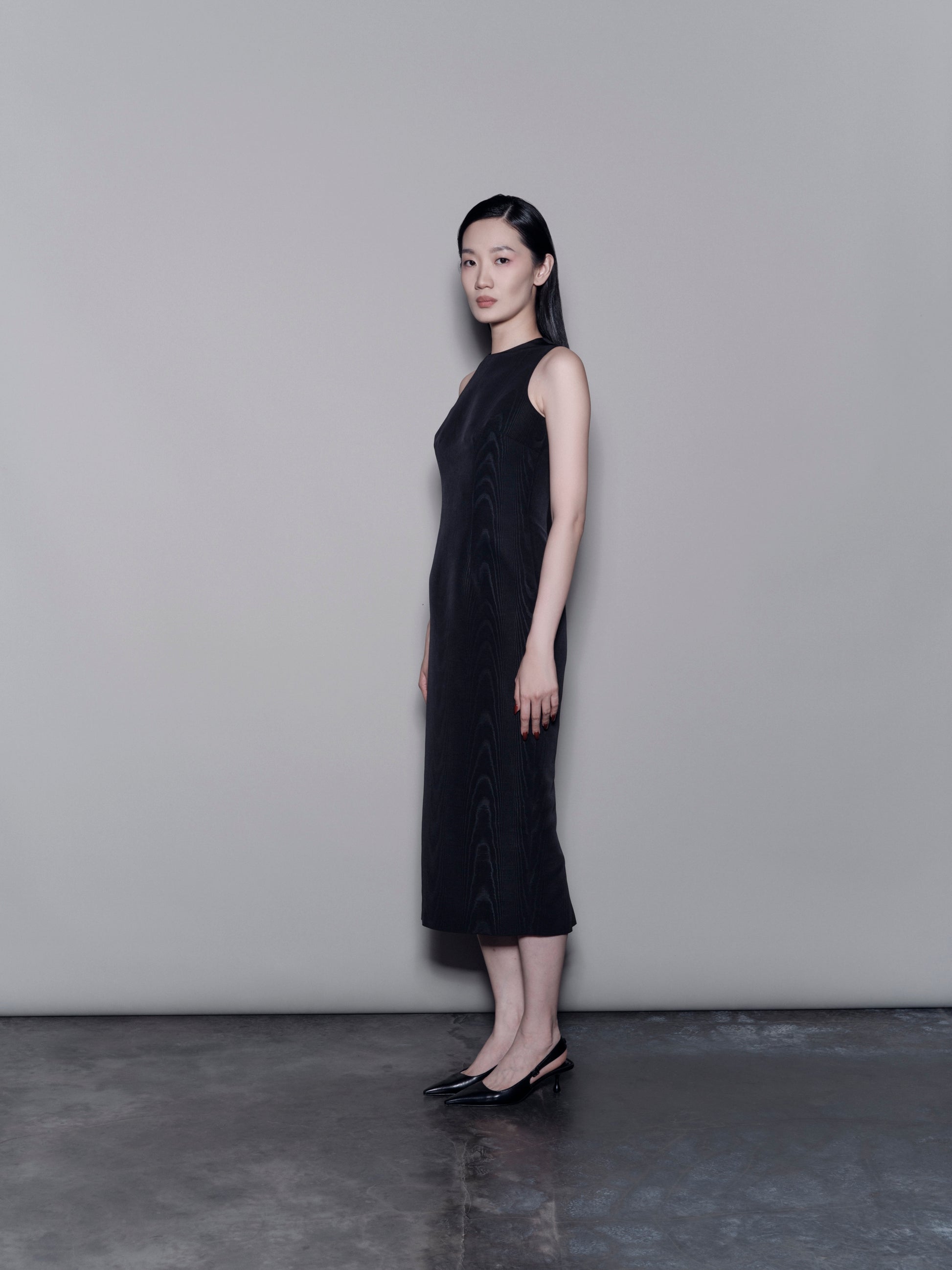 A timeless black dress designed with a refined cut and flattering silhouette. Featuring a center-back slit for ease and movement, it’s a versatile essential that transitions effortlessly from standalone elegance to layered styling.
