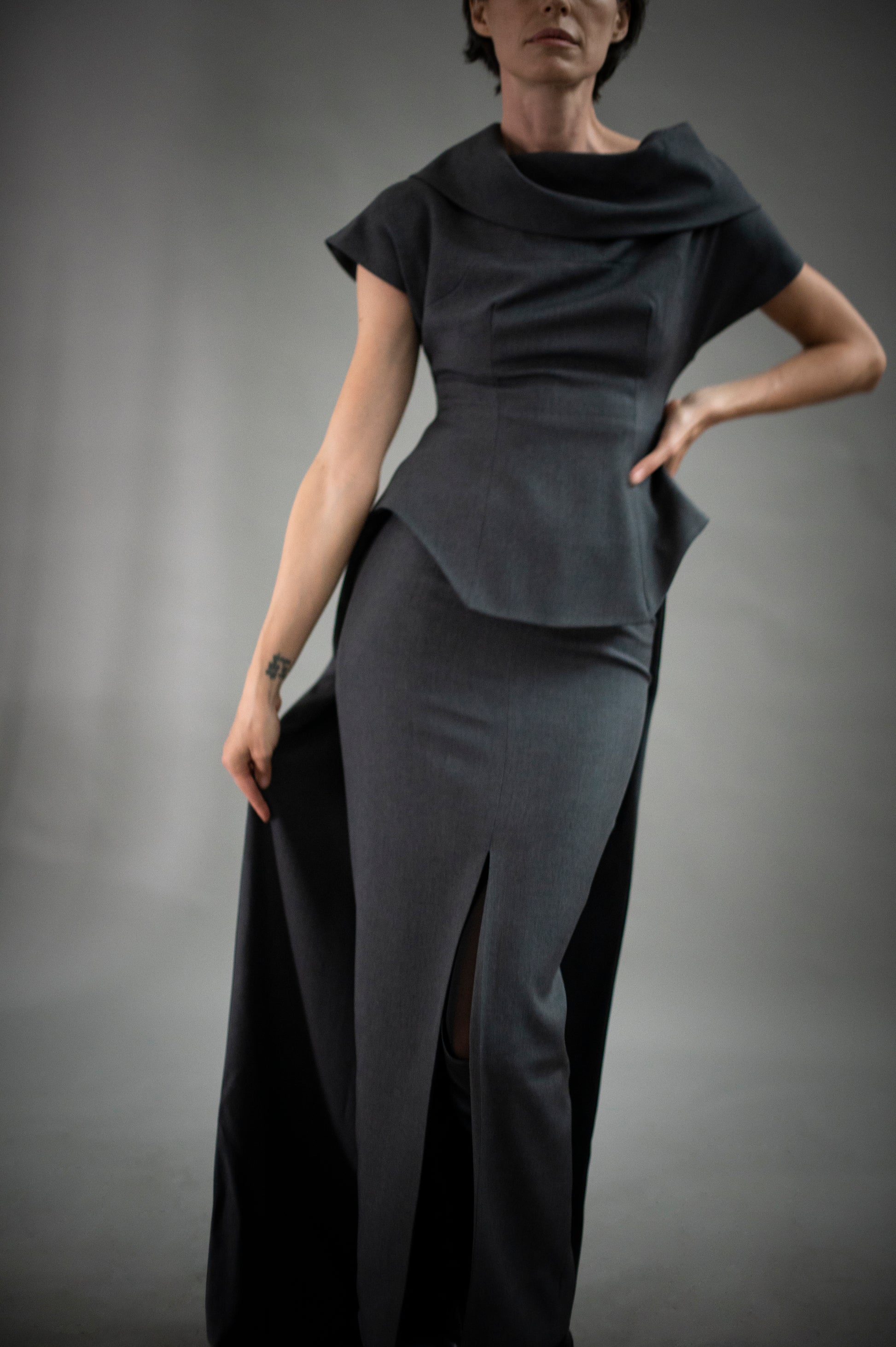 A timeless full length straight-cut skirt featuring a sleek center front slit for ease and subtle edge. Dress it up or down for any occasion.